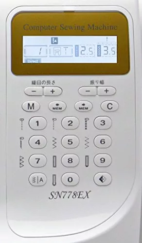 - 機能:自動糸通し、自動糸調子、自動ボタンホール、7枚送り歯、段ぬい押えボタン、縫い模様12種類、LED手元ランプ