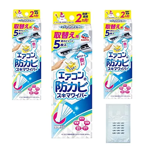 部屋用のシートタイプの防カビグッズは、取り付けるだけのものもあります。しかし掃除もしたい方には、防カビ剤シートとワイパーがセットになったグッズがおすすめです。防カビ対策をしてもホコリは付くため、どうしてもエアコンは汚れます。