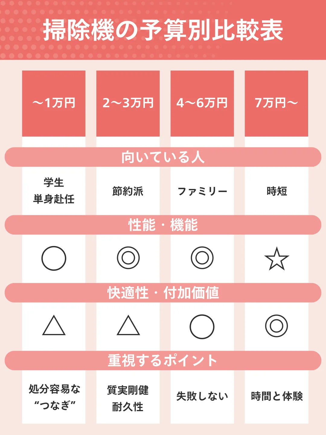 掃除機の価格は数千円から10万円超えまでピンキリです。「高いものが良い」とは限らず、自分の生活ステージや求める機能に見合った「適正価格」のモデルを選ぶことが、後悔しない買い物の秘訣です。