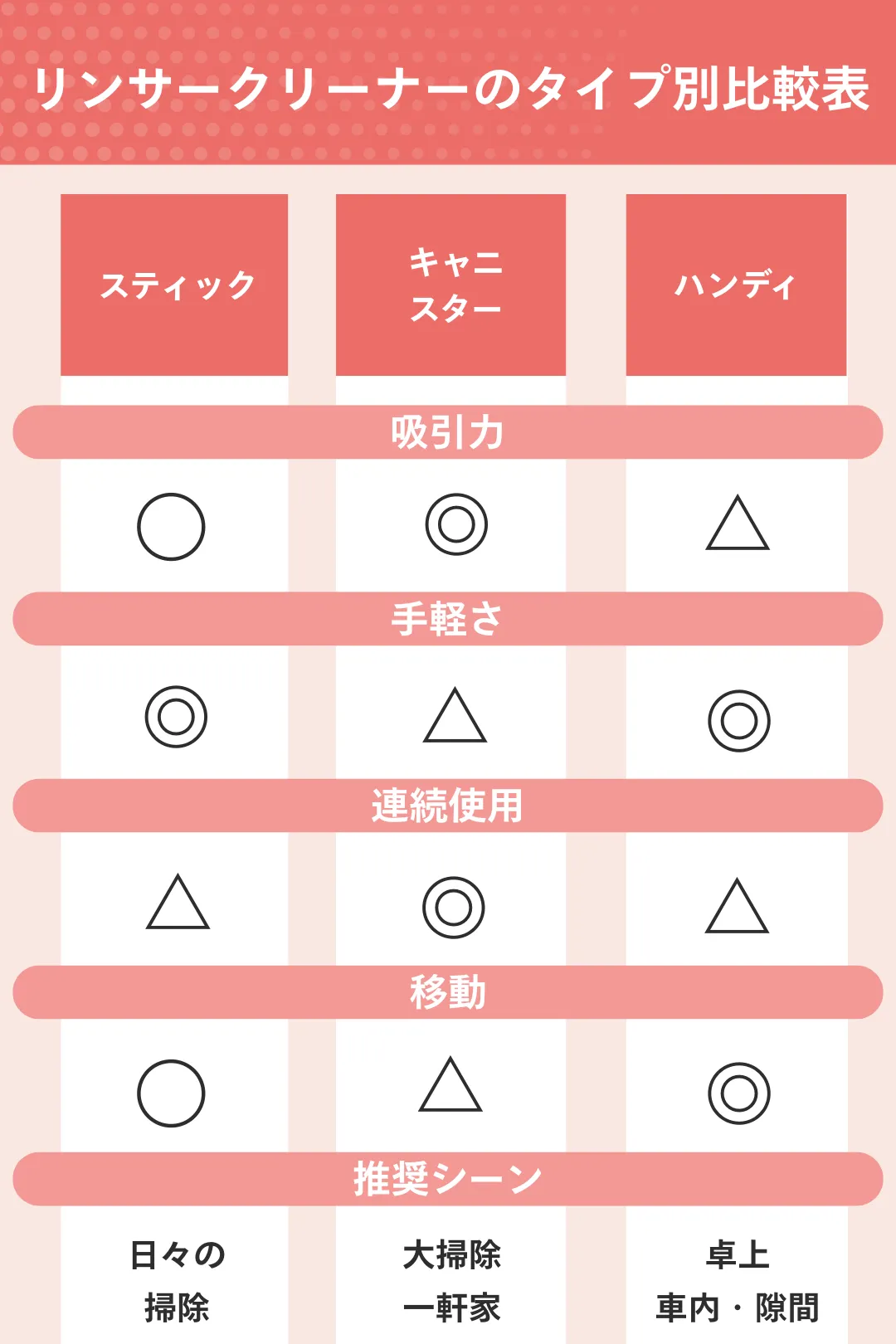 タイプ(形状)で選ぶ|掃除スタイルを決める