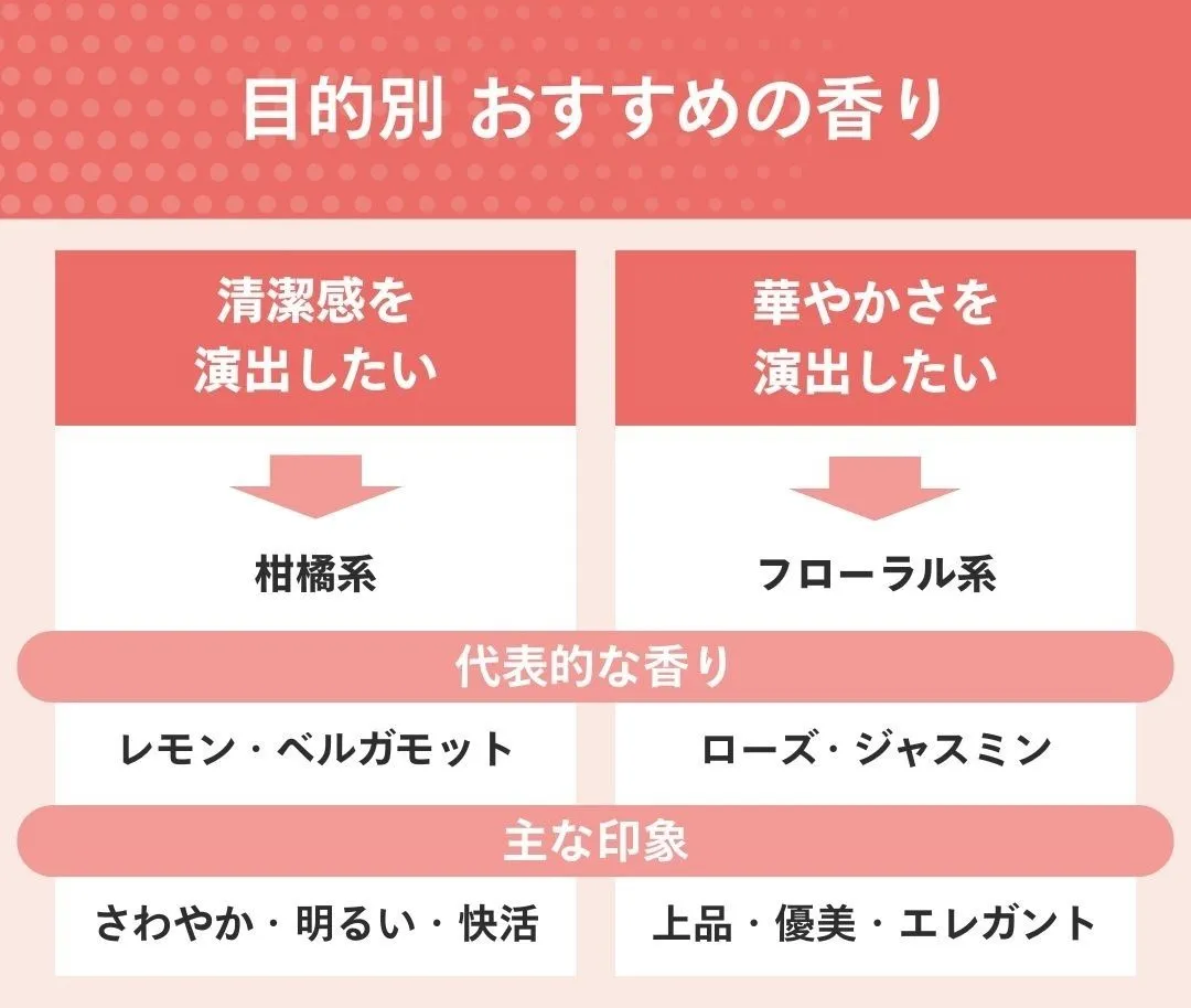 直感的に心地よいと感じる香料の組み合わせを知ることは、満足度を高める鍵となります。代表的な系統には、それぞれ異なる心理的効果や周囲に与えるイメージが付随しています。理想とする人物像を投影できる系統を探り、自分らしさを表現するための基準を確立しましょう。