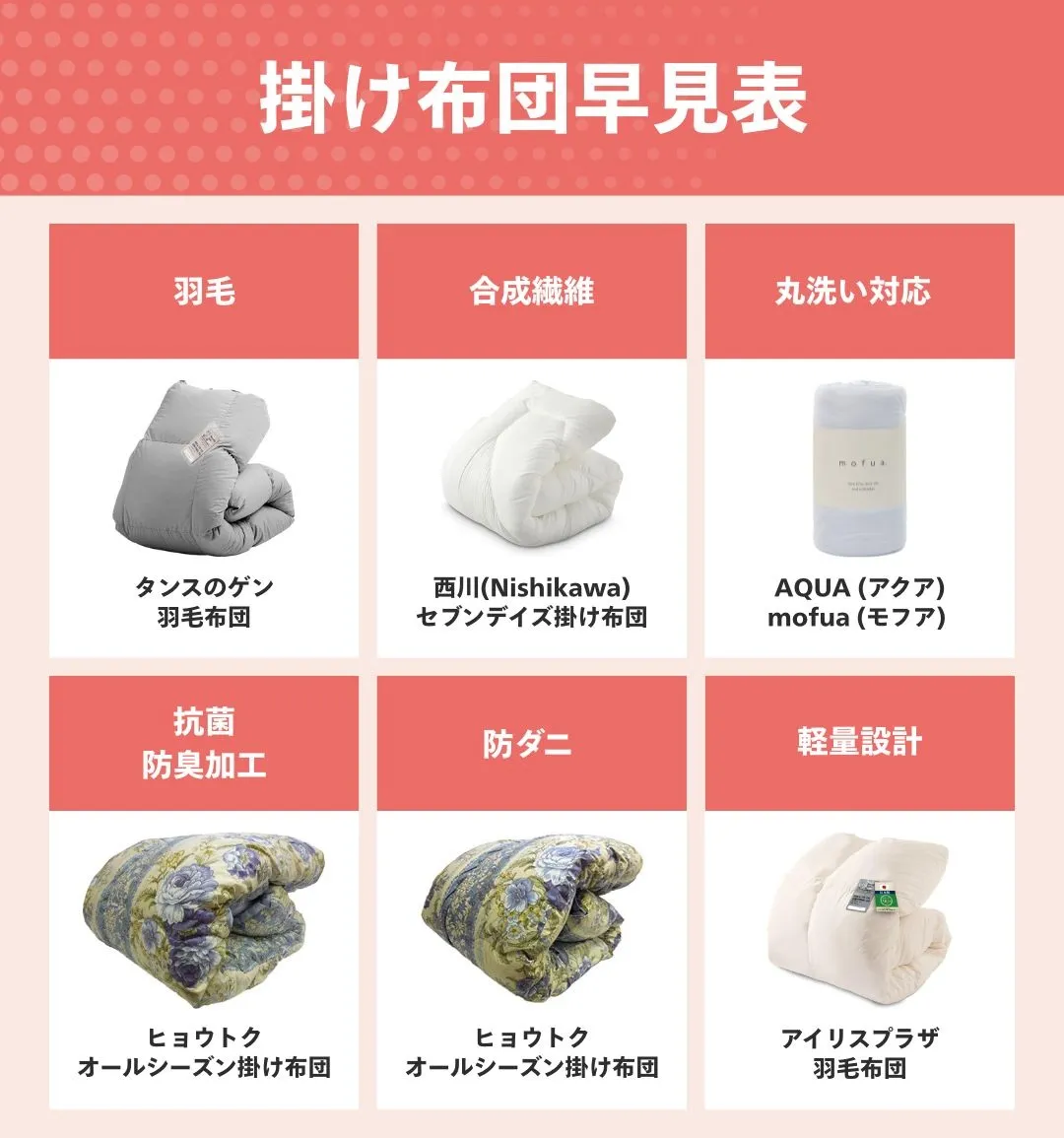 掛け布団おすすめ早見表はこちら