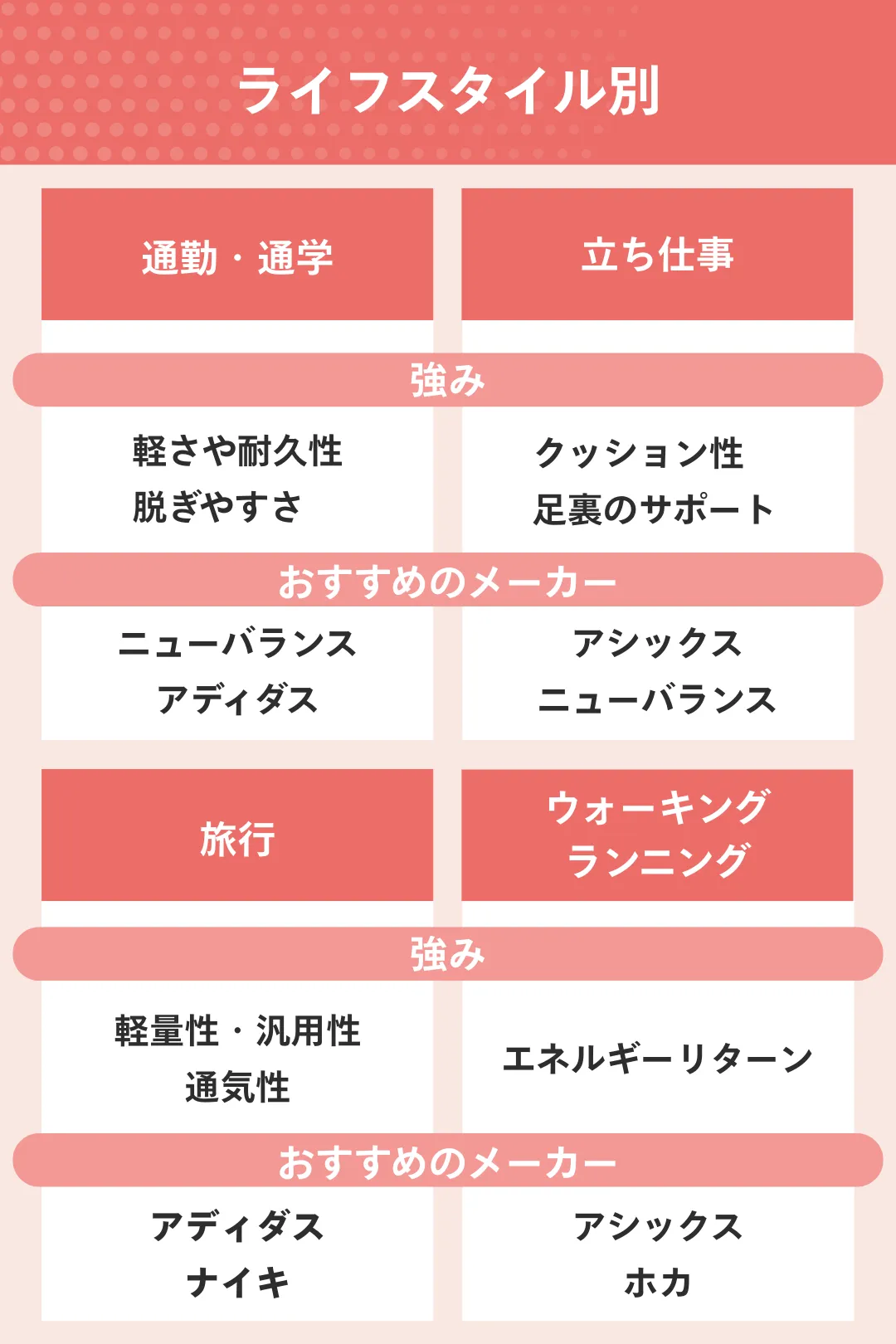 歩き方・ライフスタイルに合った用途を選ぶ