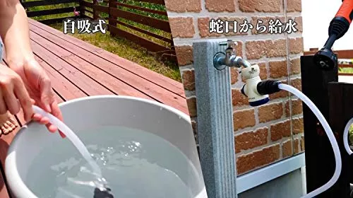自吸式とは、バケツなどに自分で水をためて給水する方法です。お風呂の残り湯など生活用水を活用できるメリットがある反面、水を容器にためておく手間がかかります。少しでも節水したい方にぴったりです。