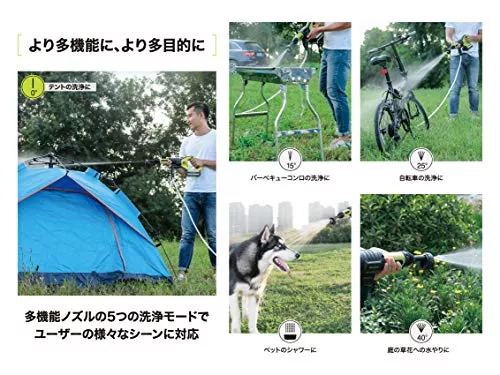 各部品はカプラー接続を採用しており組み立てが簡単、さらに強弱の調整が可能な2段階の切替ボタンを備え、ノズルのパターンも調整できるため様々なシーンに合わせた圧力調節が可能です。