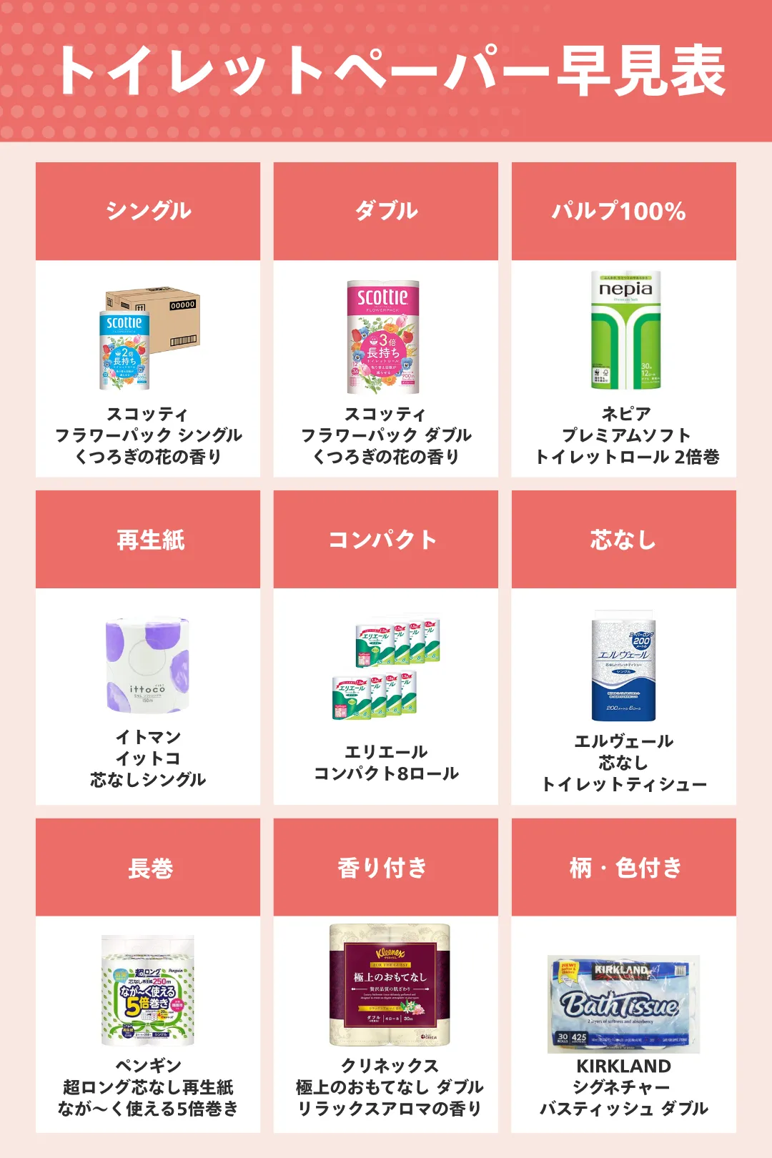 トイレットペーパーおすすめ早見表はこちら
