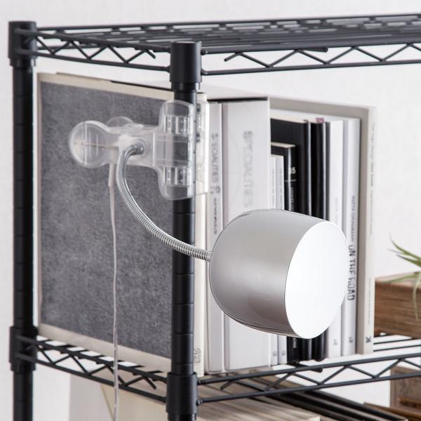 アームは360度どんな角度にも調節できて軽量なため、壁・本棚・テントなどにも設置できます。