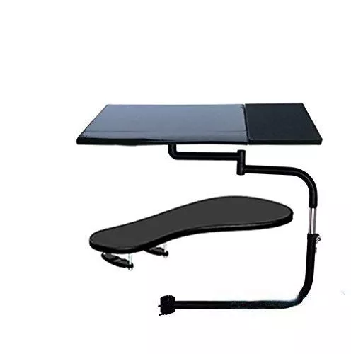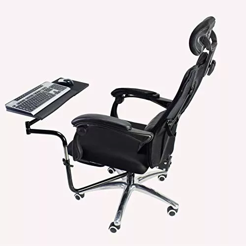 15.6インチまでのさまざまなキーボード・ノートPCに対応しています。椅子の脚の周りにピボットがあり、左右どちらでも使用できるのもポイントです。キーボードは最適なタイピング角度に調整できます。