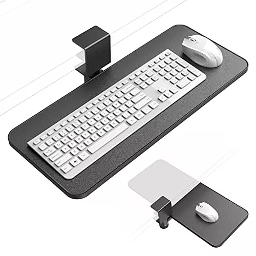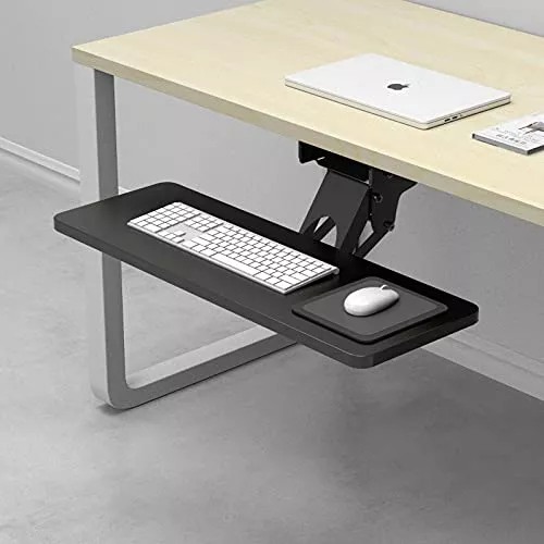 耐久性があるため長く使えるキーボードアームで、取り付けはネジ式でさらに締め具合を調整できるので安定性の多さも特徴です。マウスも置ける横長のトレイは、さまざまな幅広いキーボードに対応しています。