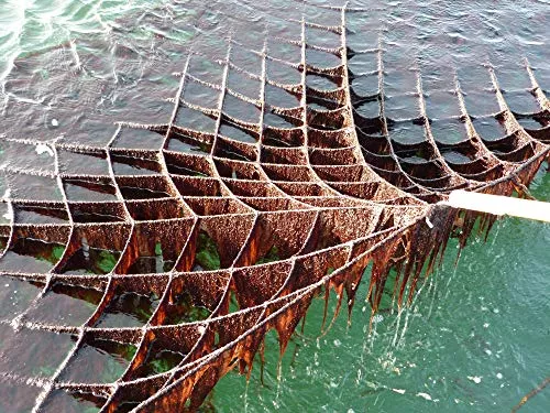 瀬戸内海産ののりは、主に「浮き流し式」と呼ばれる方法で水深が深い場所でのりを養殖しています。「浮き流し式」とは海の中に網を浮かせてのりを養殖する方法で、養殖されたのりは黒々としたツヤを持ち、しっかりとした歯ごたえが特徴です。