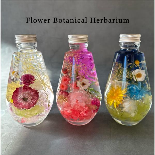ハーバリウムのイメージは花の種類だけでなくボトルの形状もポイントです。さまざまな形のボトルにも注目して選んでみてください。