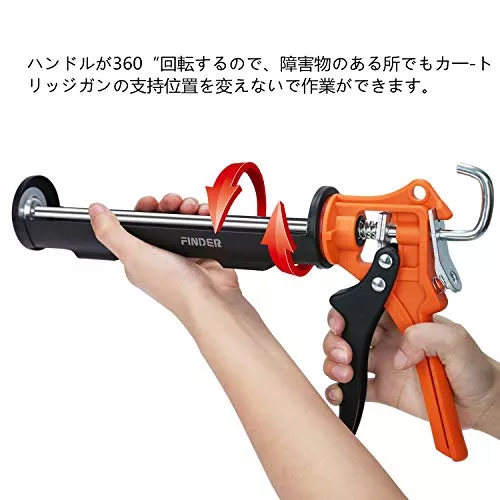 シーリング材を注入する場所は大きな面だけでなく細く狭い場所に及ぶ場合もあります。そんなときでもハンドル部分を回転させることでスムーズに作業を行えるためぜひとも欲しい機能の1つが回転機能です。