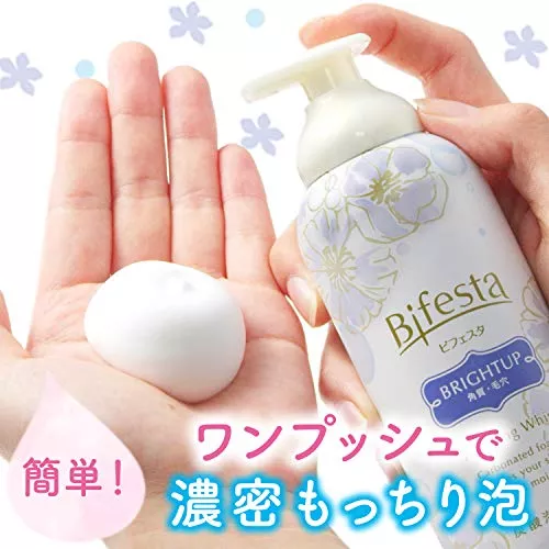 身近なドラッグストアやスーパーの店頭でも販売されている、ビフェスタの炭酸泡洗顔です。こちらは乳酸成分*¹が配合されたブライトアップタイプです。逆さにしても落ちない約4,000万個*²の濃密ミクロ泡でキメの細かい肌へ導きます。