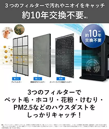 - 適用床面積:空気清浄:一般家庭 31畳(51㎡)