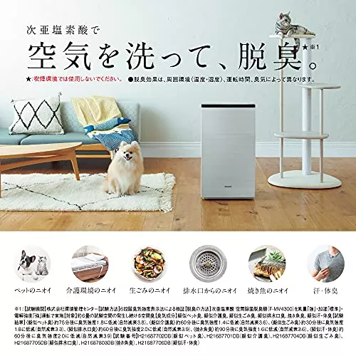 我が家には、室内で2頭のトイプードルが生活しています。過去を含めての粗相により若干の匂いが気になっていましたが、設置後は全く気にならなくなりました。ウイルスなどの除菌の効果は見分けが困難ですが快適な空間で暮らしています。