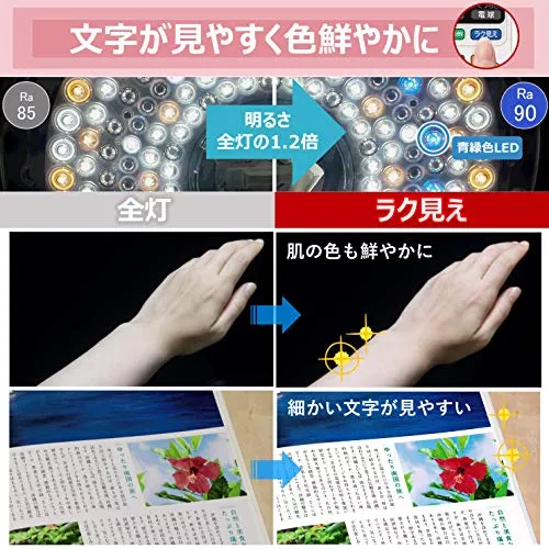 パソコンの画面が見やすい「パソコンくっきり光」と紙面の文字が見やすい「文字くっきり光」が搭載されており、パソコン作業や読書・勉強に適しています。トップクラスの省エネ性も魅力的です。