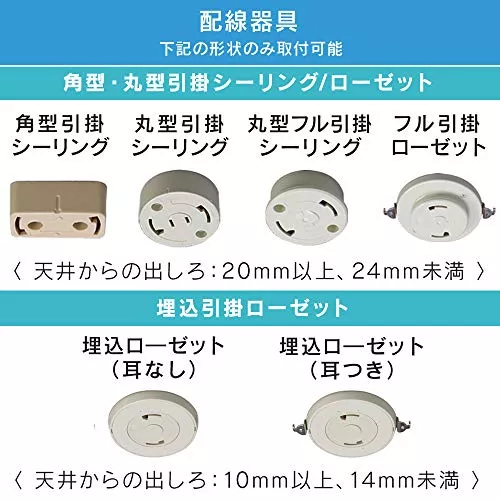 また、埋込引掛ローゼットなら出っ張りが少ないので天井との隙間なしに取り付けられますが、角型・丸型シーリングやローゼットの場合は高さがあるのでシーリングライトと天井との隙間が目立ちます。