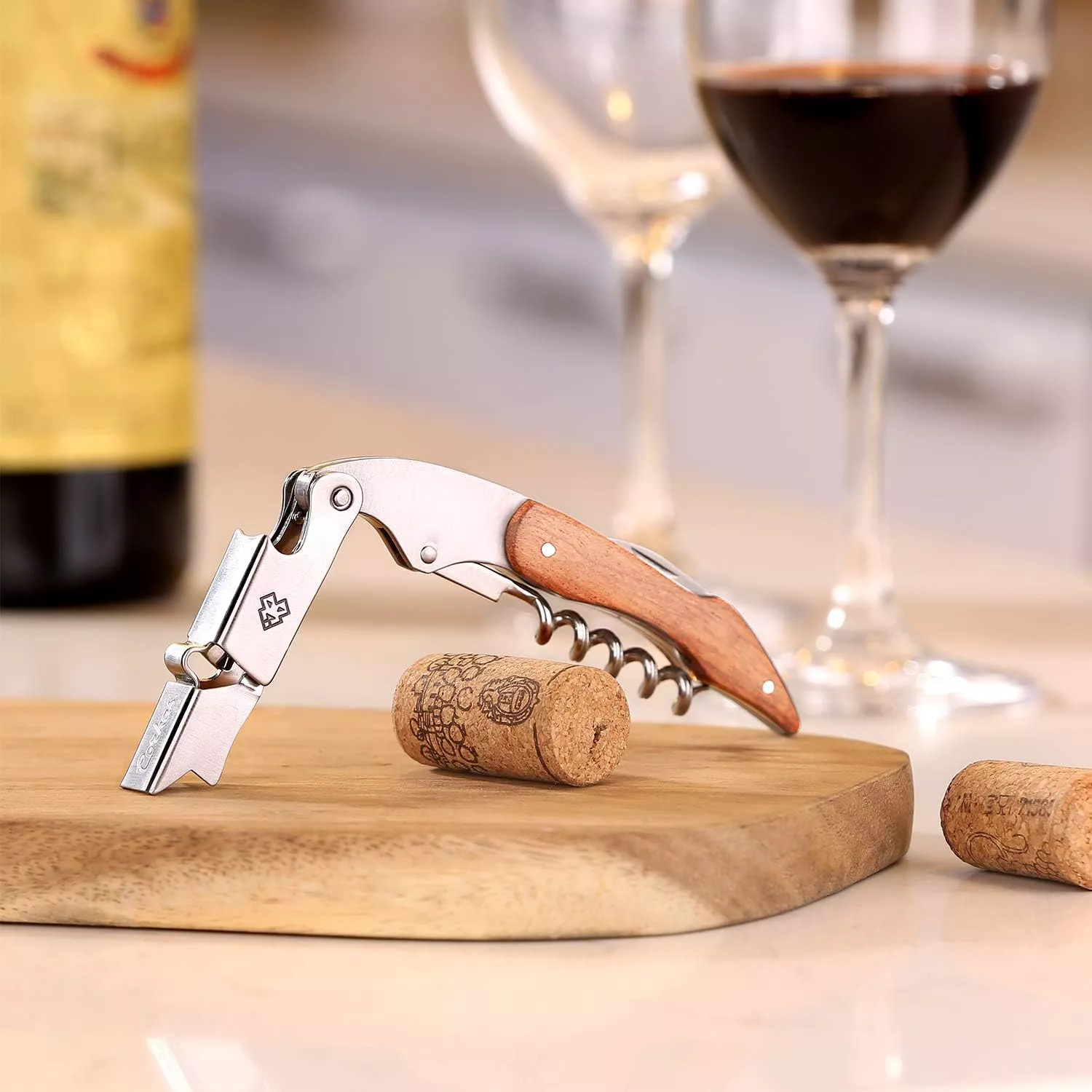 ステンレス銅と亜鉛合金で作られ、耐久性のいいワインオープナーです。人間工学に基づいたバタフライデュアルレバー設計なので、コルクを引く力が簡単になりコルクの破損を防ぎます。栓抜きとしても活用できる2in1です。