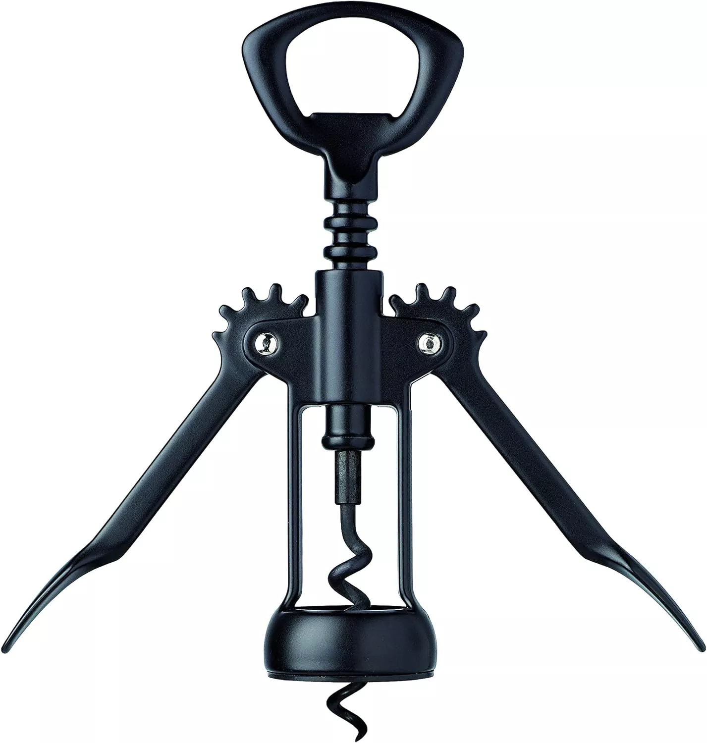 人間工学に基づき持ちやすいウィングに改良されたワインオープナー。ウィング部分には滑り止めのゴムが付いているのでアームが下げやすいです。素材には亜鉛合金を使用しているので、耐久性も抜群です。トップには栓抜きが付いています。