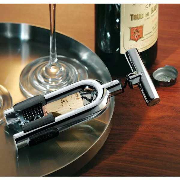 ヴィンテージワインを開けるなら、コルクを傷つけないハサミタイプのワインオープナーがおすすめです。ハサミの様な2枚の刃をコルクに挟むように差し込み、そのままコルクを引き抜きます。コルクの脆いヴィンテージワインの使用にピッタリです。