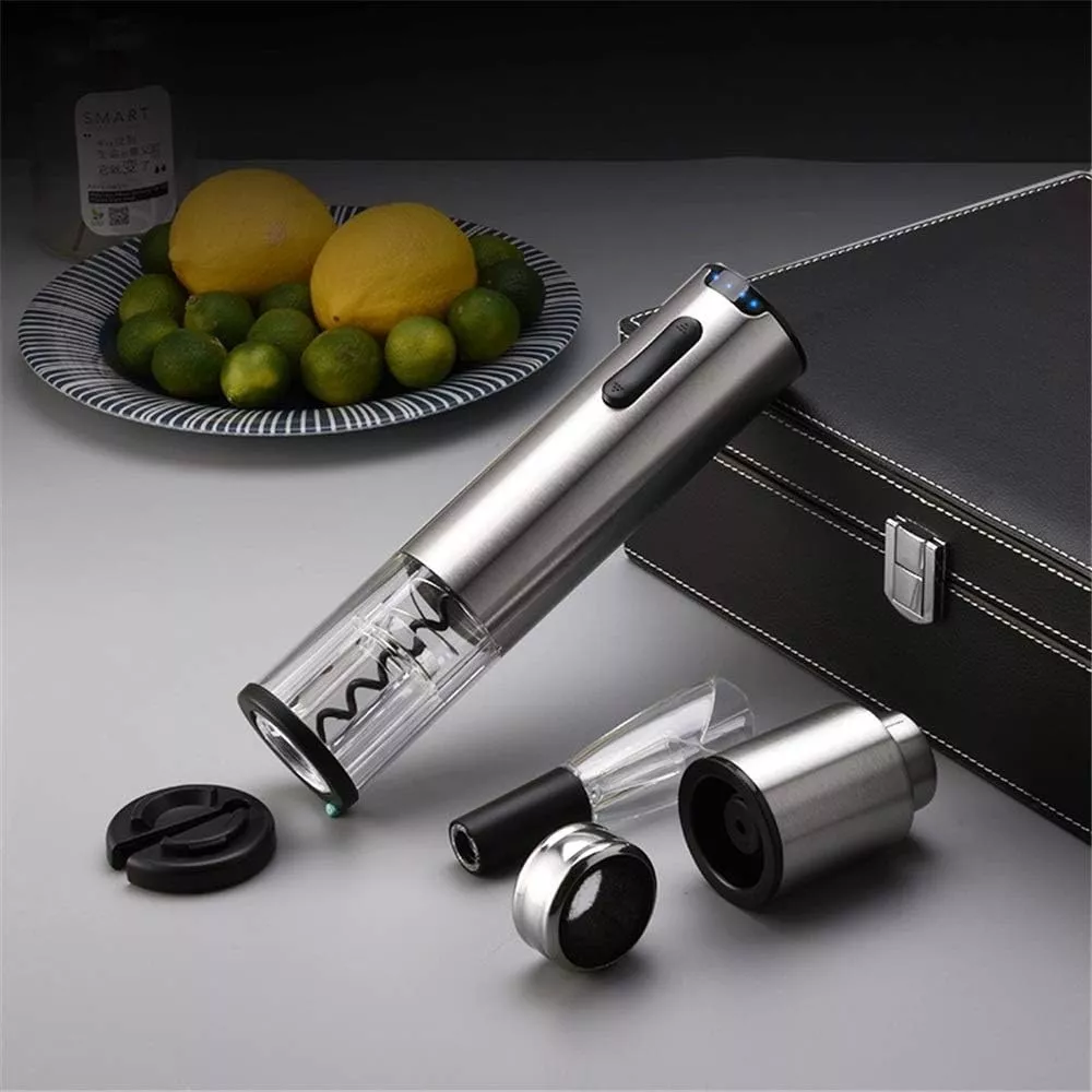 針をコルクに通過させ空気圧でコルクを抜くワインオープナーです。赤と白ワインのコルクにのみ対応なので、シャンパンやプラスチックのコルクには使用できません。カッター・オープナー・ワインポアラー・真空ストッパーの4点セットです。