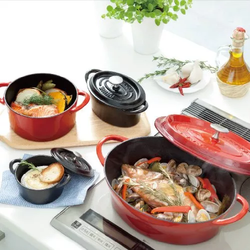 ストウブは1899年にフランスのアルザス地方で誕生した由緒ある調理器具メーカーです。有名な鋳物ホーロー鍋であるピコ・ココットは1974年にプロの料理人との共同開発で誕生しました。気密性が高く、無水調理もできるのが特徴です。