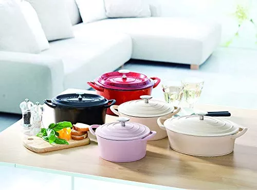ずっしりと重くフタの密閉性が高いため、野菜などの無水調理が可能です。小ぶりな鍋なのでフタをしたままオーブンに入れるといった使い方もできます。デザインもシンプルでかわいく、鋳物ホウロウ鍋としてはリーズナブルなのが魅力です。