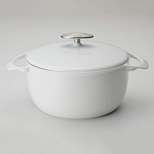 ユニロイは新潟県三条特殊鋳鋼所のオリジナルブランドで鋳物ホーローの鍋ですが、鋳物の部分が極端に薄く、通常の半分程度であるわずか2mmしかありません。熱伝導の良さはそのままにほか鋳物ホーロー鍋より非常に軽いのが魅力です。