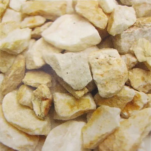白い石灰岩を加工した丸みを帯びている種類です。和風・洋風どちらにもマッチする砂利の種類で、高級感や清潔感もあります。季節を選ばず使用ができ、丸みを帯びているので庭や歩道に敷いてもペットや子供がケガをする心配もありません。