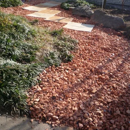 赤い色の岩石を砕いて作られレンガとの相性も良いので洋風な庭を作るときによく用いられる種類です。乾いているときの淡いピンクが水に濡れたときに深みのあるレッドに変わる種類もあります。値段も幅広く大理石を用いた赤玉砂利は高級感があり人気です。