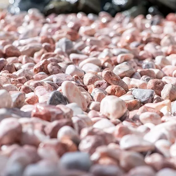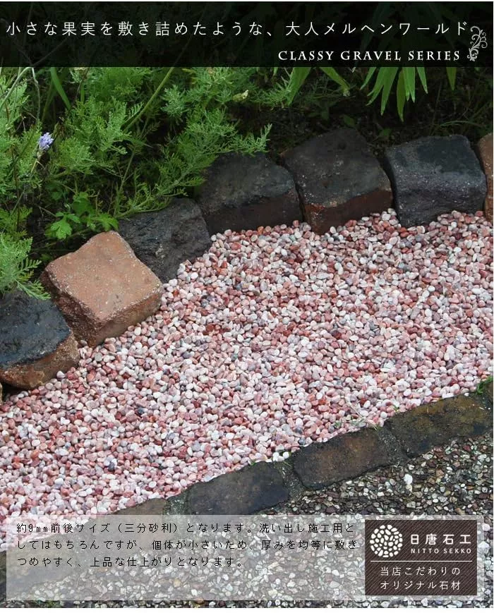 濡れるとガラッと色が変わるので、乾いたときの顔と濡れたときの顔の2つの顔を楽しめる人気の砂利です。アジアンテイストを演出しやすいピンクカラーで、どこか優しい雰囲気を与えてくれます。