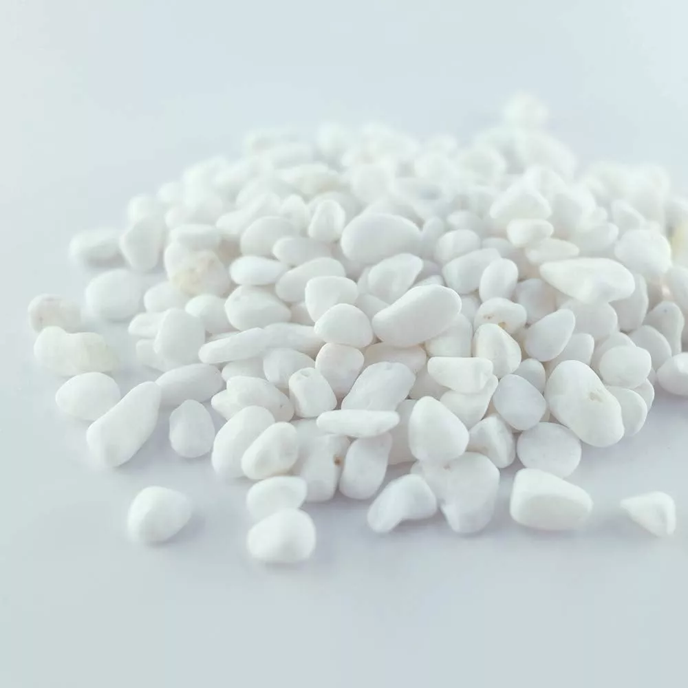 白色の玉砂利の中でも特に人気の高い商品です。カルシウムを多く含んでいるので、鮮やかな白色の砂利が欲しい方に人気があります。庭や玄関はもちろん、ベランダや水槽・お墓の周囲に敷いても見栄えがキレイになるおすすめの商品です。