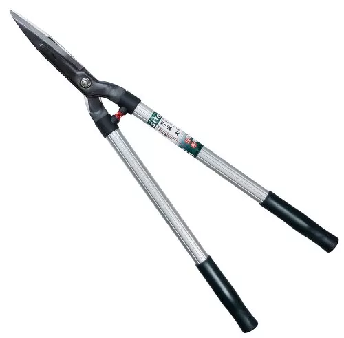 丸パイプに比べ、約4倍以上の強度がある楕円アルミを柄部分に採用し、強度と耐久性を実現しています。滑りにくいエラストマ樹脂のグリップ付きなので、手にフィットしやすい刈り込み鋏です。