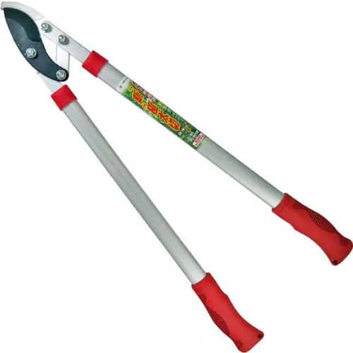 倍力リンク機構システムを採用し、40mmまでの太枝でも軽い力で切断できる刈込鋏です。剪定鋏と同じ刃の形状で、枝をがっちり挟んで切断します。刃部はフッ素コーティング加工で、生木のヤニなどが付きにくく、サビも出にくいです。