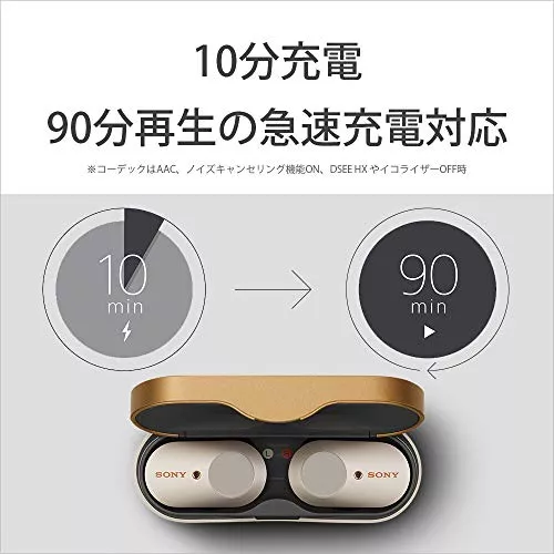 使いやすいだけでなく音質も評判で、完全ワイヤレスでありながらハイレゾ相当の高音質を楽しめます。連続再生時間は、6時間+充電3回分なので最大24時間で、10分充電で90分再生可能な急速充電も魅力です。