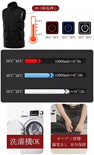 また、発熱は3秒と短いので、すぐに暖まりたいときなどには非常に便利です。水洗いも可能なので、毎日清潔な電熱ウェアを着ることができます。