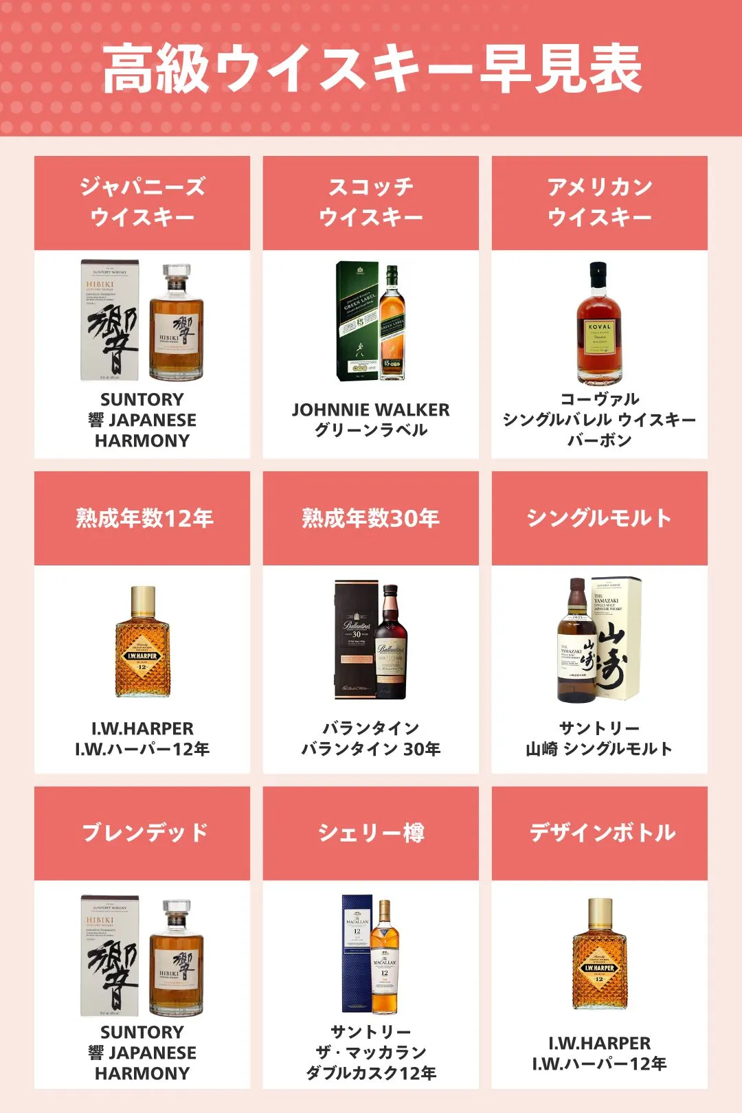 高級ウイスキーおすすめ早見表はこちら