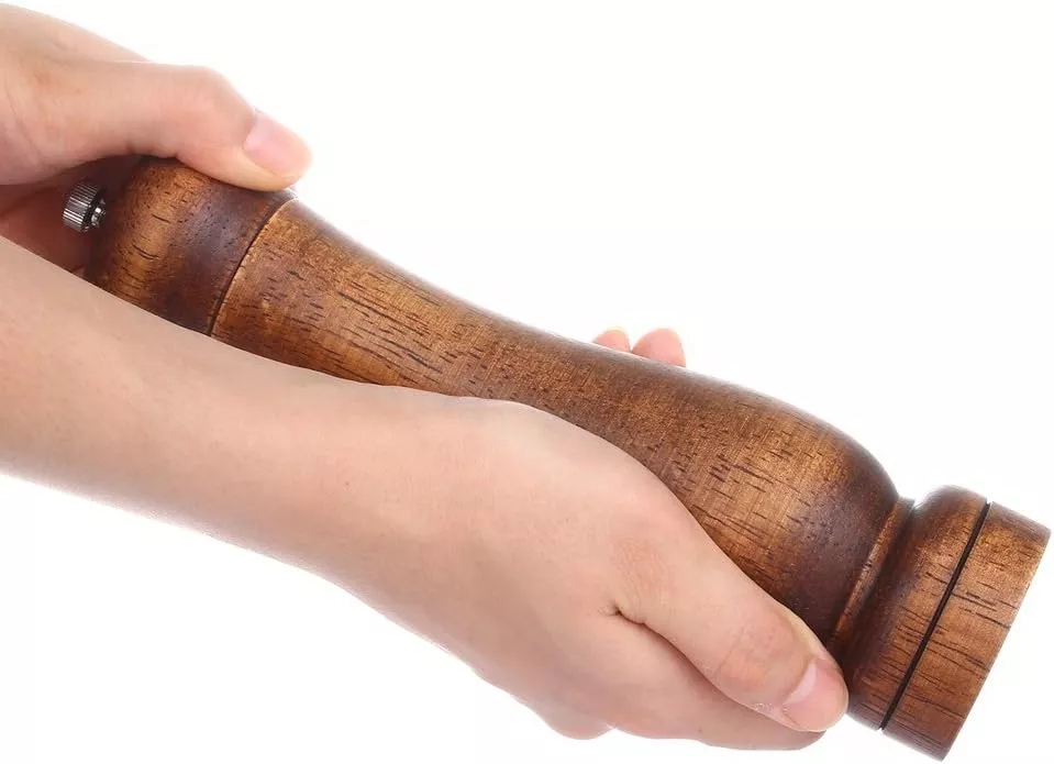 ペッパーミルには使いやすいサイズがあります。両手で挽くタイプなら、手の大きい方の場合16㎝以上はあるほうが望ましいです。手の小さい方なら12㎝以上で、太さは5~7㎝あれば握りやすくなります。