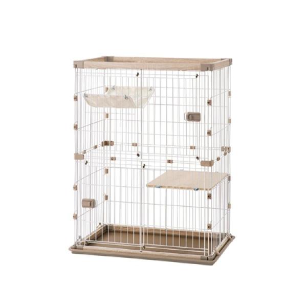 大きさを変えられるコンビネーションケージ2段と、拡張パーツのスペースがセットになったタイプです。さらに、縦の拡張パーツを使用できます。成猫には縦に広く、上下運動が苦手な子猫や足腰の弱った老猫には横に広くして使用しましょう。