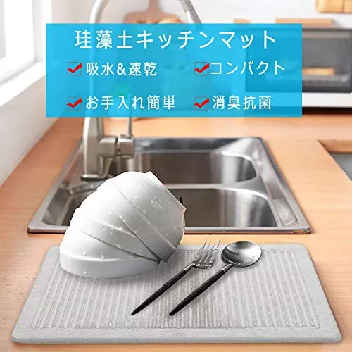 食器の乾燥に水切りマットをメインに使っていて乾燥が間に合わない方には放湿性と脱臭性にすぐれた珪藻土のものがおすすめです。吸水性も高いので食器の乾燥が早く、使用後はマット自体も自然乾燥するのでいつでも清潔に使えます。
