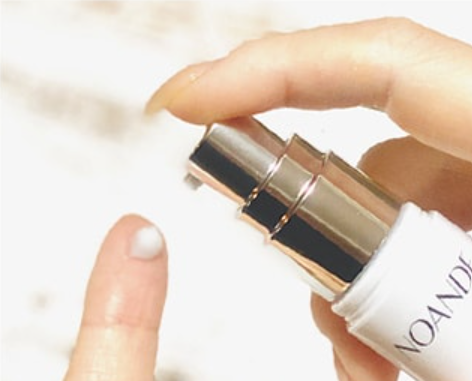 ノアンデはプッシュ式のボトル入りです。外見はホワイトとシルバーでデザインされており、顔用の美容液のような見た目です。特徴的なのは内面で、「エアレス方式」が採用されています。
