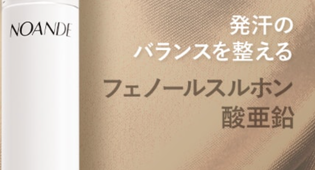 ノアンデは、Wの有効成分のうち、ひとつは「フェノールスルホン酸亜鉛」が配合されており、発汗の皮脂バランスを整えてくれます。