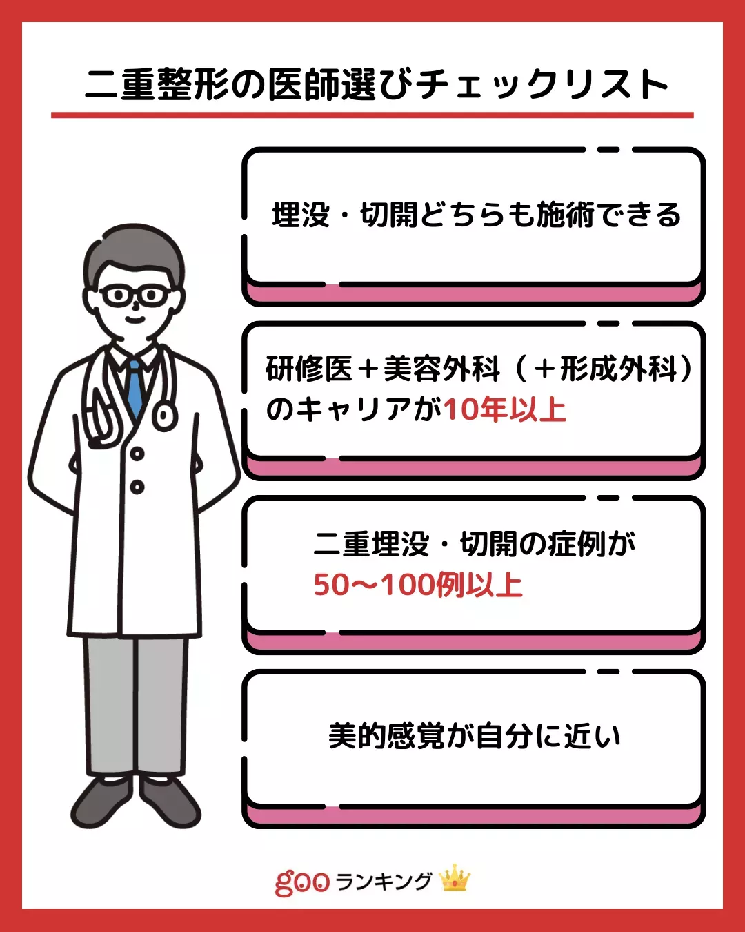 こちらを把握すると、二重整形の実情に振り回されずに医師やクリニックを選択できるはずです。