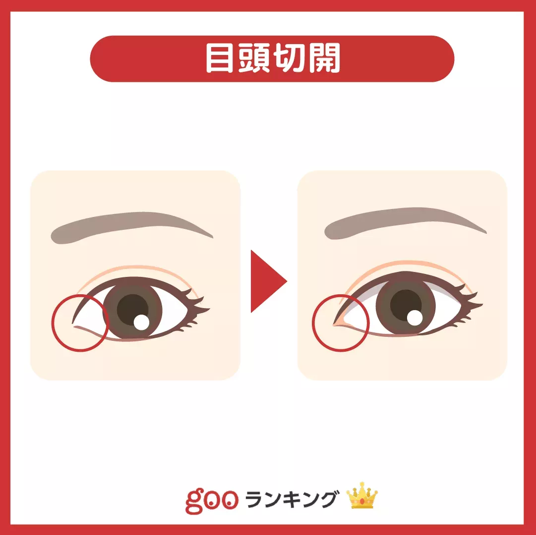 目頭切開とは目頭にある蒙古襞(もうこひだ)を切除し、目を大きく見せたりバランスを整えたりする施術です。
