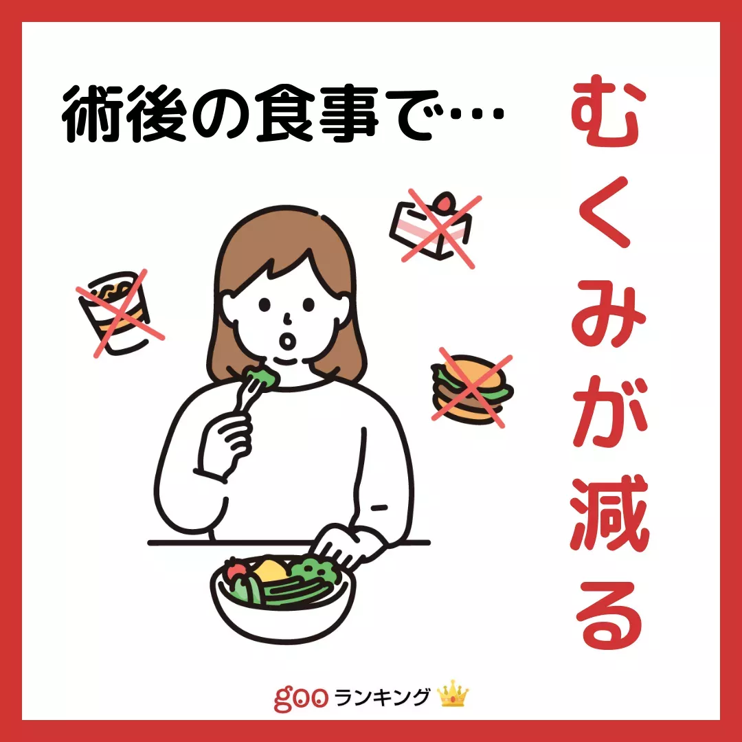 塩分のある食べ物はむくみを引き起こし、腫れが出やすくなります。辛い食べ物・お酒は血流がよくなり、腫れを長引かせる可能性があります。