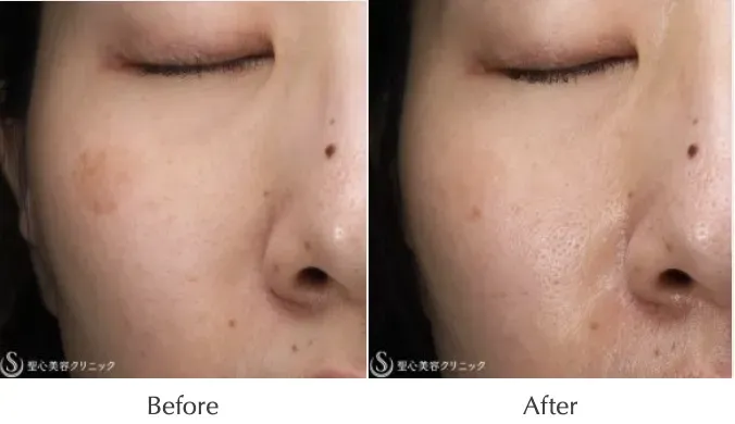 シミ取り治療でレーザーやIPLを当てると、炎症が起こる場合があります。いわゆる「戻りジミ」で、波長を当てる時点で炎症が起こるため、完全に防ぐ方法はありません。しかし一見シミに見えるものの、色素沈着の理由がシミとは違うため、1年〜半年程度で消失する場合が多いです。 |