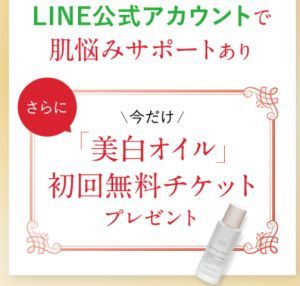肌のトラブルに悩む人はLINEの公式アカウントの肌悩みサポートも活用してみましょう。お得な定期便で購入した人ならサポートを受けられます。期間限定の同ブランドの「美白*オイル」の初回無料チケットももらえます。