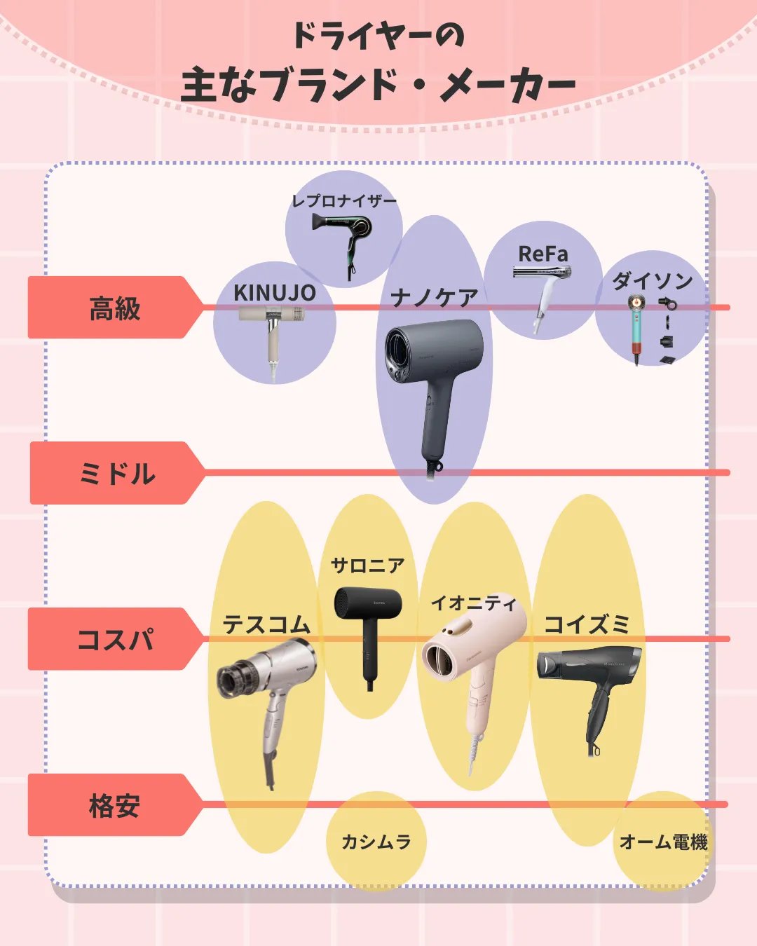 ドライヤーは全体で見ると現在100種類以上の商品が発売しており、まさしくピンからキリまであります。
