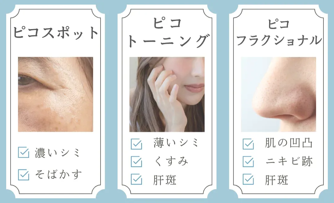 | ピコスポット | ピコトーニング | ピコフラクショナル |