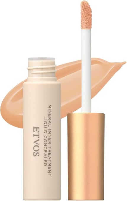 ETVOSの「ミネラルインナートリートメントリキッドコンシーラー」は石けんでオフできるため肌への負担が少なく、敏感肌の方にもおすすめです。保湿成分と整肌成分をたっぷり配合しており、うるおい感のある肌に仕上げます。